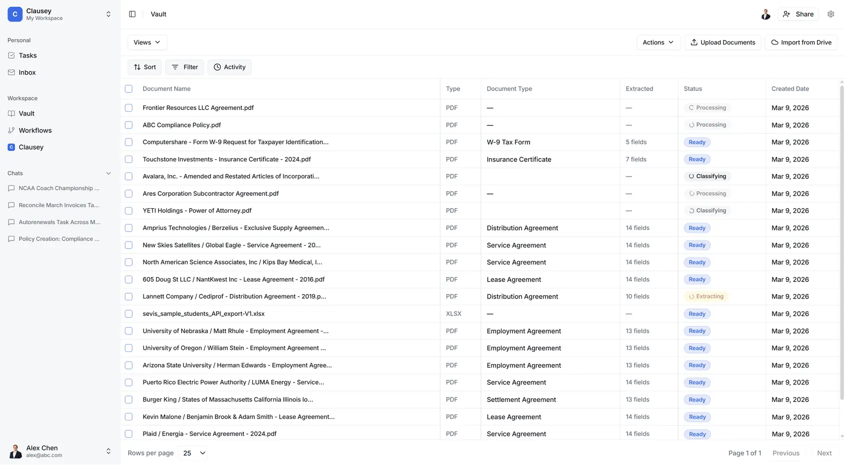 Get started in minutes, not months. Simply upload your contracts, regulatory agreements and legal documents - Clausey handles the rest. No complex setup, no IT requirements, no training needed.